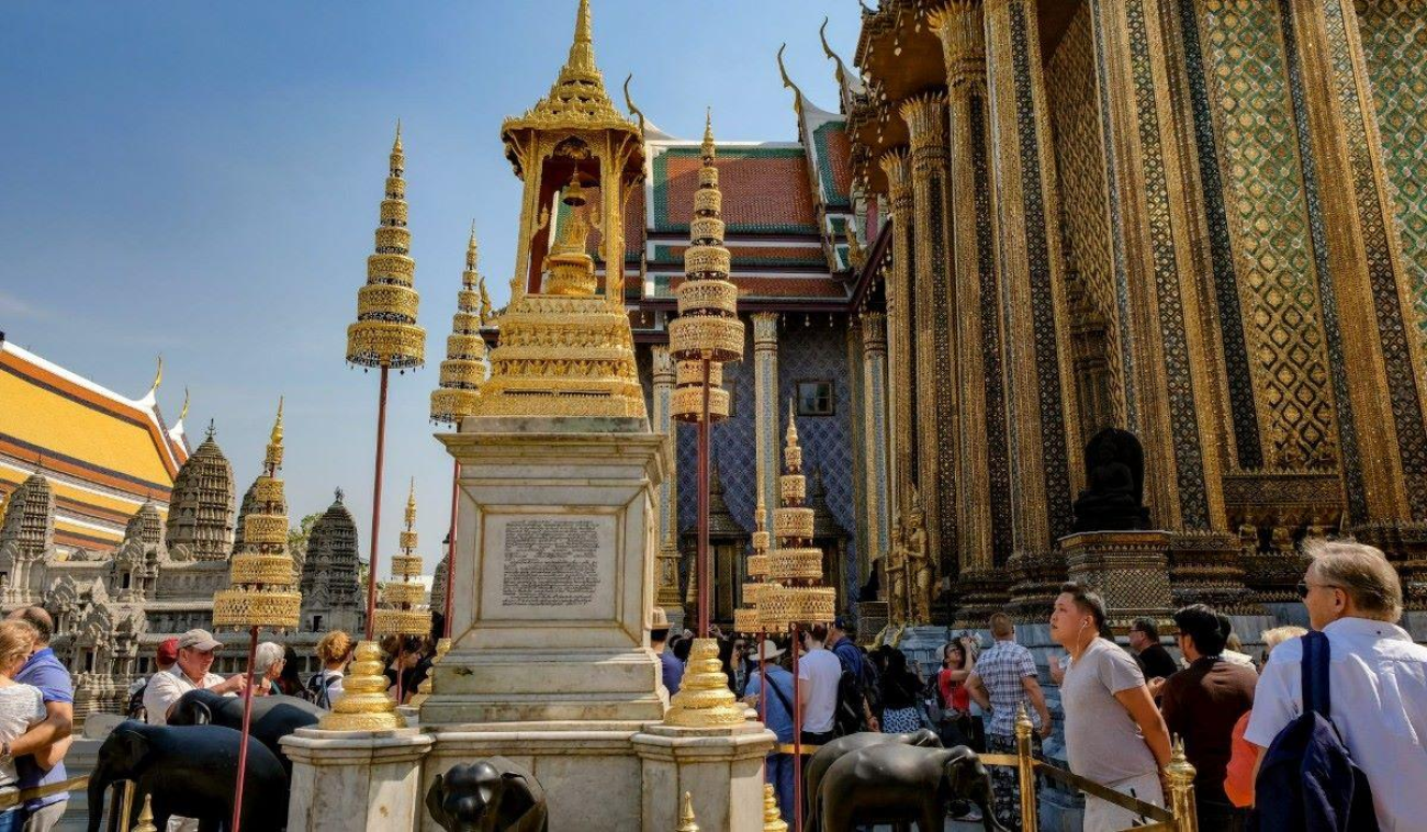 Please note the dress code for the Grand Palace: Ensure your attire adheres to the guidelines provided. Avoid clothing such as short trousers, mini skirts, sleeveless shirts, and sandals without heel straps or closed heels. However, worry not, as the Grand Palace offers complimentary clothes and shoes at their changing room for visitors who arrive in unsuitable attire, allowing everyone to fully enjoy the palace's splendor.