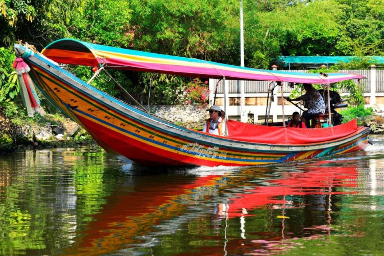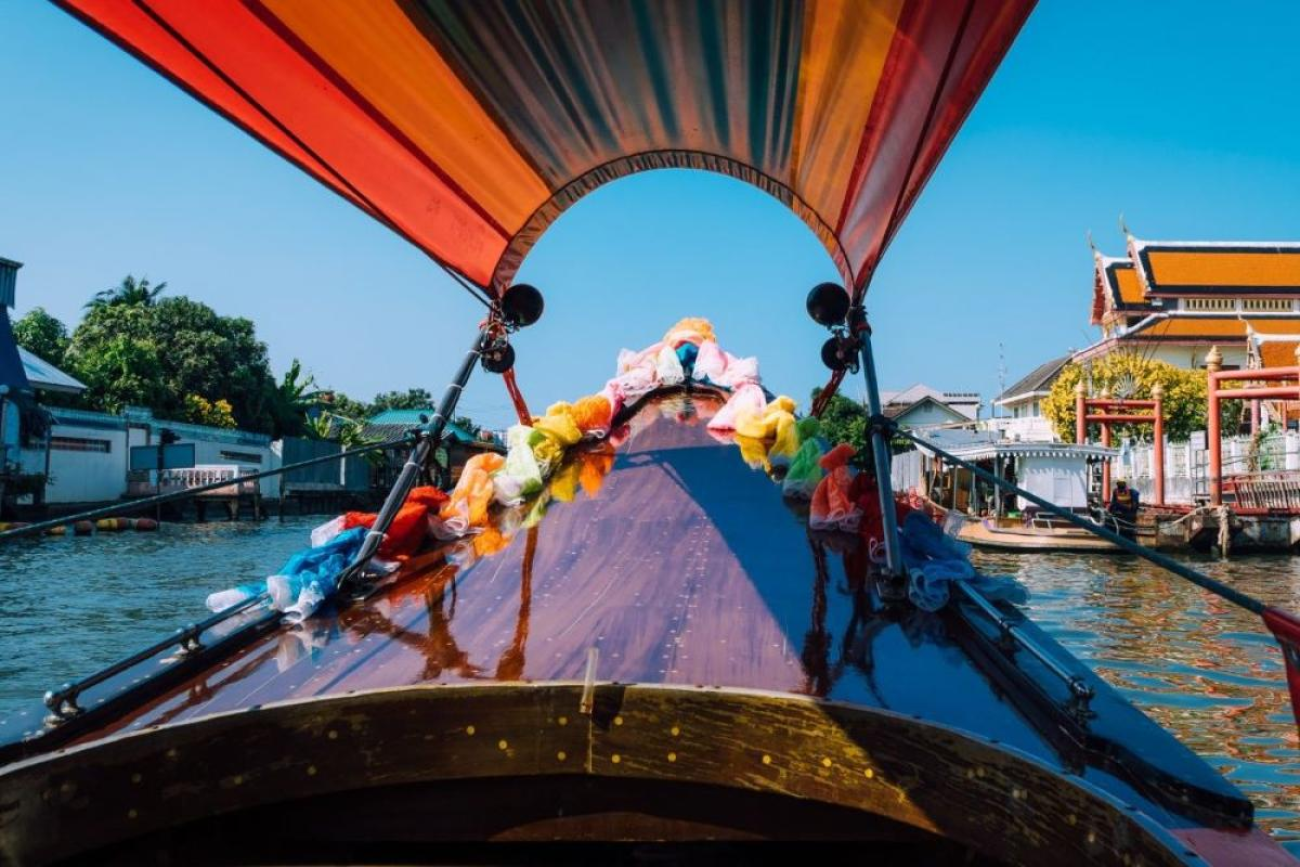 Savor a delectable lunch at a local Thai restaurant, indulging in the tantalizing flavors of authentic cuisine. Then, brace yourself for an exhilarating boat trip along the enchanting Chao Phraya River and the meandering canals, known as klongs. Glide through these waterways on a long-tailed speedboat, witnessing the traditional lifestyles of locals residing on both banks. Behold the mesmerizing Wat Arun, aptly named The Temple of Dawn, which stands majestically on the river bank, boasting a striking 79-meter pagoda.